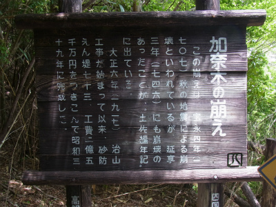 宝永4年(1707)10月4日、南海地震により、室戸市佐喜浜川最上流部で加奈木崩れが起こった。